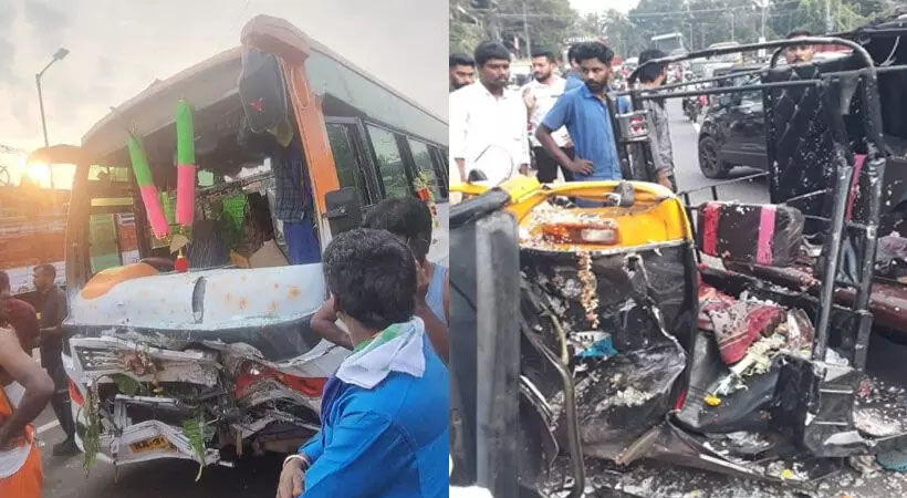 കര്ണാടകയില്നിന്നുള്ള അയ്യപ്പഭക്തരാണ് ബസ്സിലുണ്ടായിരുന്നത്. ഓട്ടോ പെട്ടെന്നു വളച്ചപ്പോള് ബസ് ഇടിക്കുകയായിരുന്നുവെന്നാണ് ദൃക്സാക്ഷികള് പറയുന്നത്. എന്നാല്, അപകടത്തിന്റെ യഥാര്ഥ കാരണം സ്ഥിരീകരിച്ചിട്ടില്ല. മരിച്ചവരുടെ മൃതദേഹങ്ങള് മഞ്ചേരി മെഡിക്കല് കോളേജിൽ സൂക്ഷിച്ചിരിക്കുകയാണ്.
