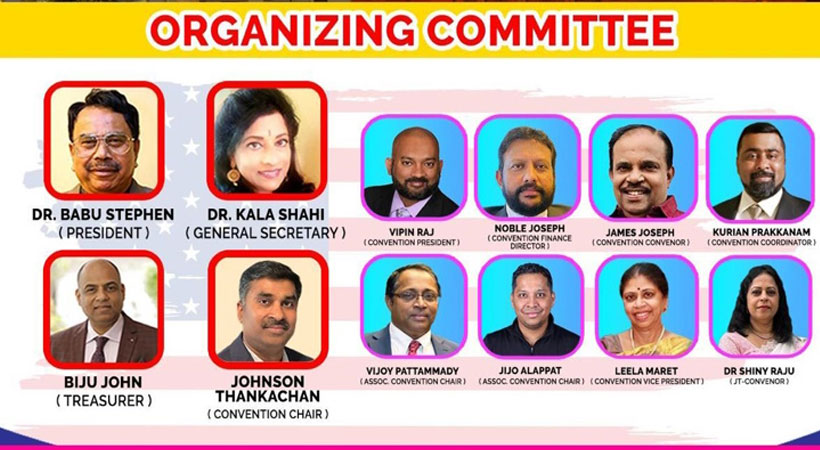 കൂടുതല് വിവരങ്ങള്ക്ക്: ഡോ. കലാ ഷഹി (സെക്രട്ടറി) 202 359 8427, ജോണ്സണ് തങ്കച്ചന് (കണ്വന്ഷന് ചെയര്മാന്) 804 931 1265, ബിജു ജോണ് (ട്രഷറര്) 516 445 1873.