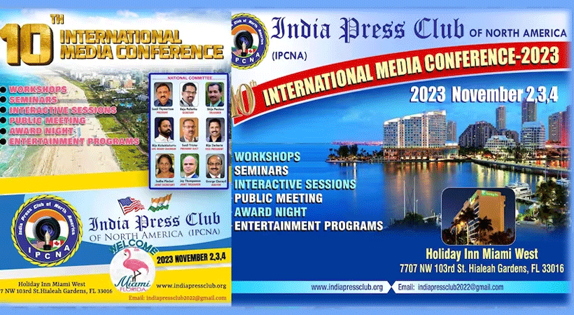 നോര്ത്ത് അമേരിക്കയിലെ മയാമി ആദ്യമായാണ് ഇന്ത്യ പ്രസ് ക്ലബ് ഓഫ് നോര്ത്ത് അമേരിക്കയുടെ മാധ്യമ സമ്മേളനത്തിന് വേദിയാകുന്നത്. മൂന്നു ദിവസം നീണ്ടുനില്ക്കുന്ന ദേശീയ മാധ്യമ സമ്മേളനത്തില് രാഷ്ട്രീയ-സാമൂഹിക-മാധ്യമ രംഗത്തെ പ്രമുഖര് പങ്കെടുക്കും. ഇന്ത്യ പ്രസ് ക്ലബ് ഓഫ് നോര്ത്ത് അമേരിക്ക നടത്തിയ ദേശീയ മാധ്യമ സമ്മേളനങ്ങള് എല്ലാം സംഘാടക മികവുകൊണ്ടും വ്യത്യസ്തമായ പരിപാടികള് കൊണ്ടും മികവുറ്റതായിരുന്നു. ഈ വര്ഷവും മികച്ച രീതിയില് മാധ്യമ സമ്മേളനം സംഘടിപ്പിക്കാനാണ് മയാമി തയാറെടുക്കുന്നത്.
