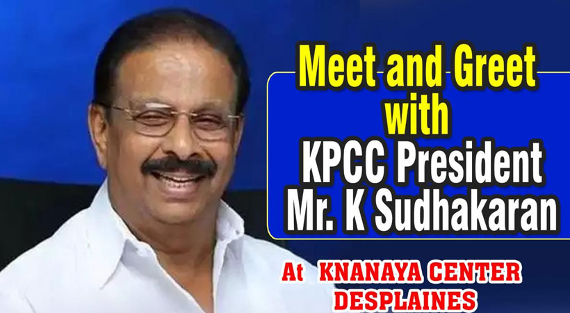 കക്ഷി രാഷ്ട്രീയ ഭേദമെന്യേ ഏവരെയും പങ്കെടുപ്പിച്ചു കൊണ്ടാണ് സ്വീകരണ സമ്മേളനം സംഘടിപ്പിക്കുന്നത്. രാവിലെ ചിക്കാഗോ അന്താരാഷ്ട്ര വിമാനത്താവളത്തില് എത്തിച്ചേരുന്ന കെ.സുധാകരന് എംപിയെ വിവിധ സംഘടനാ,സാമൂഹ്യ, സാംസ്കാരിക നേതാക്കള് തുടങ്ങിയവര് സ്വീകരിക്കും. ജനുവരി 1 നു തിങ്കളാഴ്ച വൈകുന്നേരം 6 മണിക്ക് ചിക്കാഗോയില് ഡെസ്പ്ലൈന്സിലുള്ള ക്നാനായ സെന്ററില് വച്ചാണ് സ്വീകരണ സമ്മേളനം (1800 E Oakton St Des Plaines IL 60018)