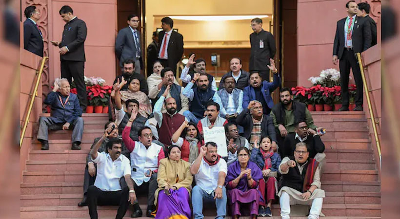 ലോക്സഭയിലെ അതിക്രമത്തെക്കുറിച്ചു ചർച്ച ആവശ്യപ്പെട്ട 13 പ്രതിപക്ഷ എംപിമാരെ കഴിഞ്ഞ ദിവസം സസ്പെൻഡ് ചെയ്തിരുന്നു. പാർലമെന്റിലെ അതിക്രമത്തിനെതിരെ പ്രതിഷേധിച്ച എംപിമാരെ സസ്പെൻഡ് ചെയ്തതോടെ കേന്ദ്ര സർക്കാരിനെതിരെ തുറന്ന പോരിലേക്കു പ്രതിപക്ഷം നീങ്ങുന്നതിനിടെയാണ് നടപടി. അതിക്രമത്തെക്കുറിച്ച് പാർലമെന്റിന്റെ ഇരുസഭകളിലും ആഭ്യന്തരമന്ത്രി അമിത് ഷാ പ്രസ്താവന നടത്തണമെന്നാണ് പ്രതിപക്ഷത്തിന്റെ ആവശ്യം.