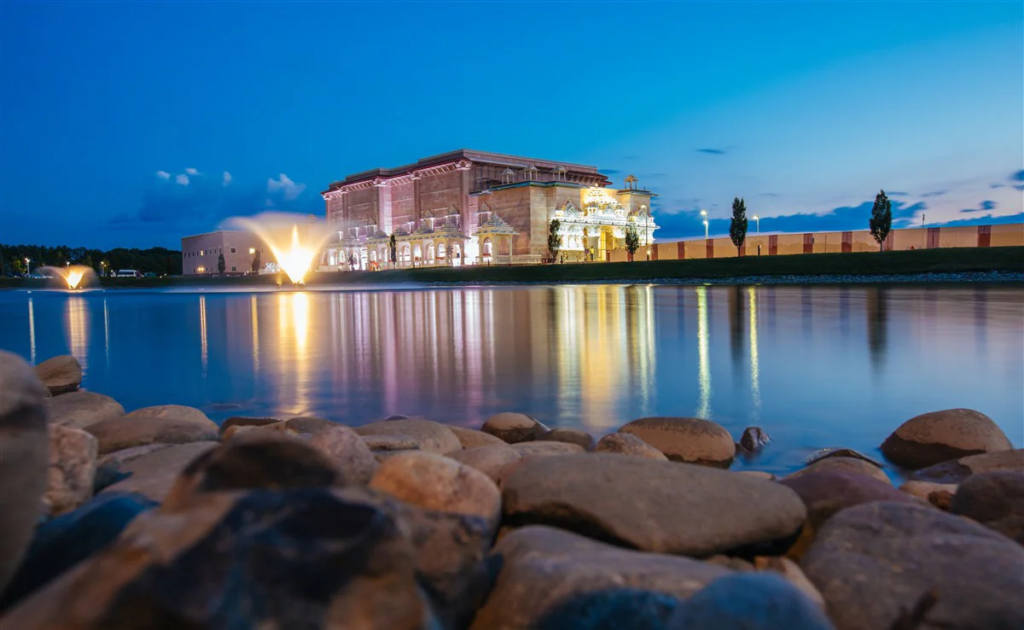 ന്യൂജഴ്സിയിലെ റോബിന്സ്വില്ലെ ടൗണ്ഷിപ്പില് 183 ഏക്കറിൽ വ്യാപിച്ചുകിടക്കുന്ന ക്ഷേത്രസമുച്ചയം 12 വർഷം കൊണ്ടാണു നിർമിച്ചത്. യുഎസിൽനിന്നുള്ള 12,500 വൊളന്റിയർമാർ നിർമാണത്തിൽ പങ്കാളികളായി. ലോകത്തെ ഏറ്റവും വലുതും ഉയരും കൂടിയതുമായ ഹിന്ദു ക്ഷേത്രമായ കംബോഡിയയിലെ അങ്കോർ വാട്ടിനു പിന്നിൽ രണ്ടാം സ്ഥാനമാണ് ഈ ക്ഷേത്രത്തിന്. 100 ഏക്കറിലാണു ഡൽഹിയിലെ അക്ഷർധാം ക്ഷേത്രം.