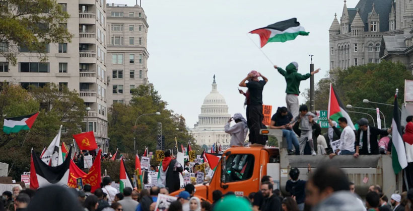 വാഷിങ്ടൺ ഡിസി: ഗാസ മുനമ്പിൽ ഇസ്രയൽ ഉപരോധവും ആക്രമണവും തുടരുമ്പോൾ, വാഷിംഗ്ടൺ ഡിസിയിലും യുഎസിന്റെ മറ്റ് ഭാഗങ്ങളിലും പലസ്തീൻ അനുകൂല പ്രകടനങ്ങളുമായി ജനങ്ങൾ തെരുവിലിറങ്ങുന്നു.