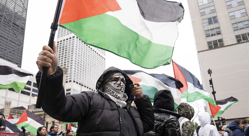 ചിക്കാഗോ: ആയിരക്കണക്കിന് കുടുംബങ്ങൾ വിദേശത്ത് ദുരിതമനുഭവിക്കുമ്പോൾ, ഷിക്കാഗോയിലെ സിഗ്നേച്ചർ ഷോപ്പിങ് ജില്ലയിൽ “സാധാരണപോലെ ബിസിനസ്സ്” അംഗീകരിക്കില്ലെന്ന് പ്രഖ്യാപിച്ച് പലസ്തീൻ അനുകൂല പ്രതിഷേധക്കാർ മാഗ് മൈലിൽ റാലി നടത്തി. റാലിയുടെ ഭാഗമായി പ്രതിഷേധക്കാർ ഒരു മണിക്കൂർ മാഗ് മൈലിലൂടെയുള്ള ഗതാഗതം തടഞ്ഞു.