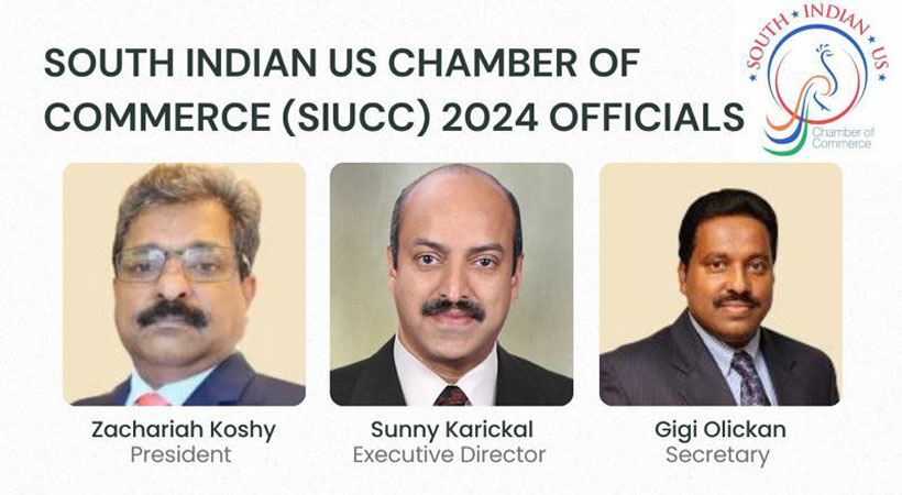 ഹൂസ്റ്റണ്: സൗത്ത് ഇന്ത്യന് യുഎസ് ചേംബര് ഓഫ് കൊമേഴ്സിന്റെ ( SIUCC) 2024 ലേക്കുള്ള പുതിയ സാരഥികളെ തിരഞ്ഞെടുത്തു. ഹൂസ്റ്റണിലെ സാമൂഹ്യ സാംസ്കാരിക രംഗത്തെ നിറസാന്നിധ്യങ്ങളാണ് പുതിയ വര്ഷത്തെ ഭാരവാഹികള്. ഡിസംബര് 3 നു ഞായറാഴ്ച വൈകുന്നേരം സംഘദനയുടെ സ്റ്റാഫ്ഫോര്ഡിലുള്ള കോര്പ്പറേറ്റ് ഓഫീസില് കൂടിയ വാര്ഷിക പൊതുയോഗത്തിലാണ് ഐക്യകണ്ടേന തിരഞ്ഞെടുപ്പ് നടന്നത്. പ്രസിഡന്റ് ബേബി മണക്കുന്നേല് സമ്മേളനത്തില് അദ്ധ്യക്ഷത വഹിച്ചു.