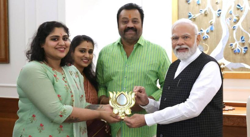 ഒരു ചിത്രത്തിൽ സ്വർണനിറമുള്ള താമരയുടെ രൂപം കുടുംബം പ്രധാനമന്ത്രിക്ക് സമ്മാനിക്കുന്നത് കാണാം. ‘കുടുംബങ്ങളുടെ നേതാവ്’ എന്ന ക്യാപ്ഷനോടെയാണ് മോദിയോടൊപ്പമുള്ള ചിത്രം താരം പങ്കുവെച്ചത്. സുരേഷ് ഗോപി പ്രധാനമന്ത്രിയെ നേരിൽക്കാണും എന്ന് റിപ്പോർട്ടുകളുണ്ടായിരുന്നു.