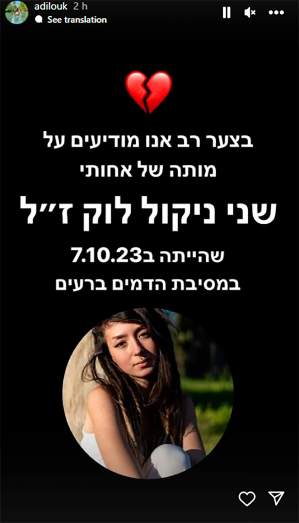 ഒരു സംഗീത പരിപാടിയില് പങ്കെടുക്കുന്നതിനിടെയാണ് ഷാനി ലൂക്ക് അടക്കമുള്ളവര്ക്ക് നേരേ ഹമാസിന്റെ ആക്രമണമുണ്ടായത്. യുവതി കൊല്ലപ്പെട്ടതായി നേരത്തെ തന്നെ റിപ്പോർട്ടുകൾ പുറത്തു വന്നെങ്കിലും ഇസ്രയേൽ ഇത് സ്ഥിരീകരിച്ചിരുന്നില്ല. ഇതിനിടെ യുവതിയുടെ ക്രെഡിറ്റ് കാർഡിൽ നിന്ന് പണം നഷ്ടപ്പെട്ടതായി മാതാവ് റിക്കാർഡ ലൂക്ക് വ്യക്തമാക്കുകയും ചെയ്തിരുന്നു.