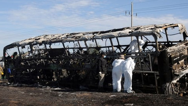 പടിഞ്ഞാറന് സംസ്ഥാനമായ ജാലിസ്കോയിലെ ഗ്വാഡലജാര നഗരത്തില് നിന്ന് സിനാലോവയിലെ ലോസ് മോച്ചിസിലേക്ക് പോവുകയായിരുന്ന പാസഞ്ചര് ബസാണ് അപകടത്തില്പ്പെട്ടത്. അപകടത്തെത്തുടര്ന്ന് ബസ് കത്തിയമരുകയായിരുന്നു.