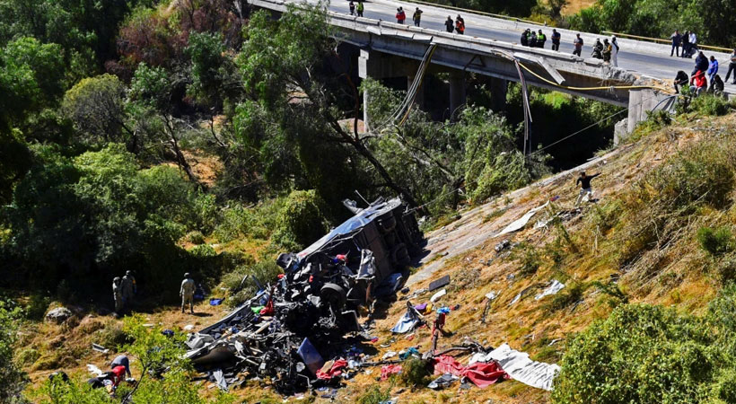 സെന്ട്രല് സ്റ്റേറ്റായ അഗ്വാസ്കാലിയന്റസുമായി സകാറ്റെകാസിനെ ബന്ധിപ്പിക്കുന്ന ഒരു ഹൈവേയിലാണ് അപകടം നടന്നത്. ട്രക്കില് നിന്ന് ധാന്യം നിറച്ച കണ്ടെയ്നര് ബസിലേക്ക് വീണതോടെ ബസ് മറിഞ്ഞ് അപകടം സംഭവിക്കുകയായിരുന്നു.