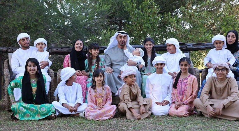 MBZ എന്ന ഇനീഷ്യലിൽ അറിയപ്പെടുന്ന യുഎഇ പ്രസിഡന്റ് ഷെയ്ഖ് മുഹമ്മദ് ബിൻ സായിദ് അൽ നഹ്യാൻ നയിക്കുന്ന കുടുംബത്തിൽ 18 സഹോദരന്മാരും 11 സഹോദരിമാരുമുണ്ട്. എമിറാത്തി രാജകുടുംബത്തിന് ഒമ്പത് മക്കളും 18 പേരക്കുട്ടികളുമുണ്ട്.