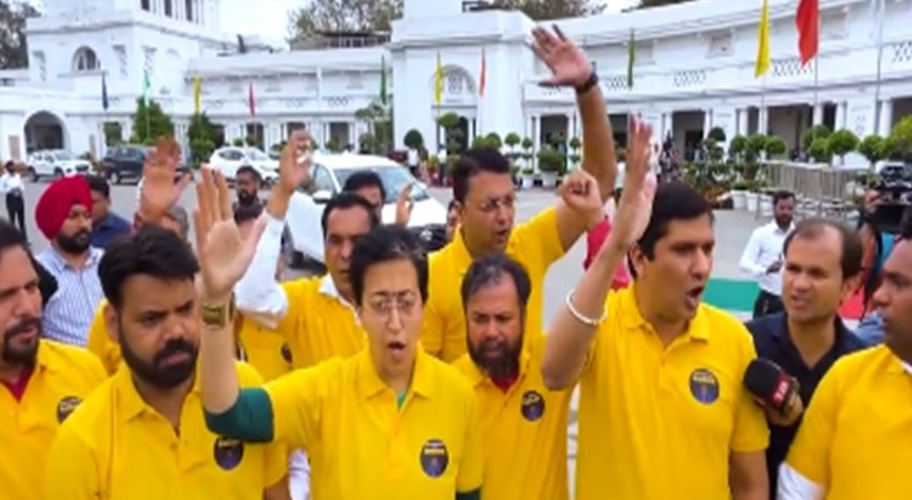 ഡല്ഹി മുഖ്യമന്ത്രി കൂടിയായ തങ്ങളുടെ ദേശീയ കണ്വീനറെ വിട്ടയക്കണമെന്ന ആവശ്യം ഉന്നയിച്ചും, പ്രധാനമന്ത്രി നരേന്ദ്ര മോദിയുടെയും കേന്ദ്ര ആഭ്യന്തര മന്ത്രി അമിത് ഷായുടെയും കീഴിലുള്ള ‘സ്വേച്ഛാധിപത്യത്തെ’ അപലപിച്ചും മന്ത്രിമാരായ അതിഷിയും സൗരഭ് ഭരദ്വാജും ഉള്പ്പെടെയുള്ള എഎപി നേതാക്കള് പ്രതിഷേധം ഉയര്ത്തി.