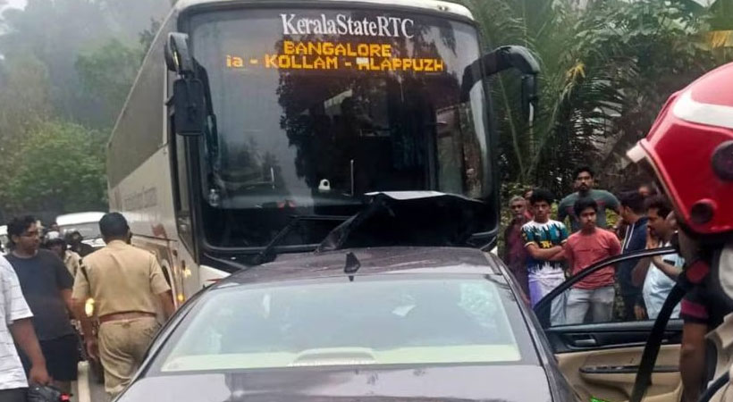 അപകടത്തില് മലപ്പുറം കുഴിമണ്ണ സ്വദേശികളായ ആമിന, മക്കളായ ആദില്, അബ്ദുള്ള എന്നിവരാണ് മരിച്ചത്. തിരുവനന്തപുരം-ബെംഗളൂരു കെഎസ്ആര്ടിസി സ്കാനിയ ബസിലേക്ക് ഇവര് സഞ്ചരിച്ച കാര് ഇടിച്ചു കയറുകയായിരുന്നുവെന്നാണ് പ്രാഥമിക വിവരം. കാറില് യാത്ര ചെയ്തവരാണ് മരണപ്പെട്ടവര്.