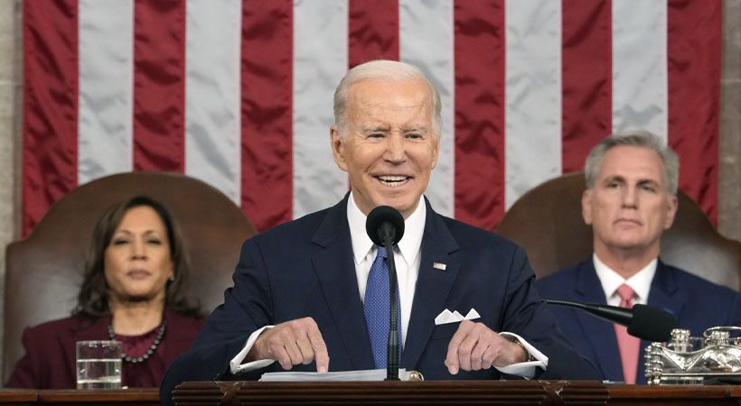 പ്രസിഡൻ്റ് ജോ ബൈഡൻ്റെ സ്റ്റേറ്റ് ഓഫ് യൂണിയൻ പ്രസംഗത്തിൽ അമേരിക്കയിലെ മധ്യമവർഗത്തിന് ആശ്വസിക്കാൻ വക നൽകുന്ന പ്രഖ്യാപനങ്ങൾ. ലോകത്തിലെ ഏറ്റവും ശക്തമായ സമ്പദ്വ്യവസ്ഥയാണ് അമേരിക്കയുടേത് എന്ന് അദ്ദേഹം തൻ്റെ പ്രസംഗത്തിൽ അവകാശപ്പെട്ടു.