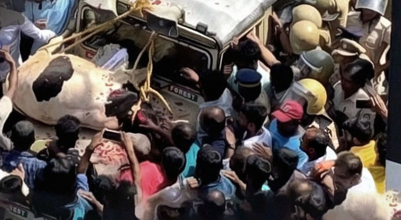 പുൽപ്പളളി: ദിവസങ്ങൾക്കുള്ളിൽ കാട്ടാനയുടെ ആക്രമണത്തിൽ രണ്ടുപേർ കൊല്ലപ്പെട്ടതിൽ പ്രതിഷേധിച്ചുള്ള ഹർത്താലിൽ വയനാട് പുൽപ്പളളിയിൽ ജനരോഷം ആളിക്കത്തുന്നു. ഹർത്താൽ ദിനത്തിൽ പുൽപ്പളളിയിൽ കൂട്ടം ചേർന്നെത്തിയ ജനം വനംവകുപ്പിന്റെ വാഹനം പിടിച്ചെടുത്ത് ചെറിയ തോതിൽ അക്രമം കാട്ടി. വനംവകുപ്പിന്റെ ജീപ്പിന്റെ കാറ്റ് അഴിച്ചുവിട്ട ജനക്കൂട്ടം റൂഫ് വലിച്ചുകീറി ജീപ്പിന് മുകളിൽ റീത്ത് വെച്ച് പ്രതിഷേധിച്ചു.