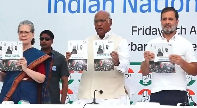 രാജ്യത്തിൻ്റെ രാഷ്ട്രീയ ചരിത്രത്തിൽ ഈ പ്രകടനപത്രിക ‘ന്യായ് കാ ദസ്തവേസ്’ (നീതിക്കുള്ള ഒരു രേഖ) ആയിരിക്കുമെന്ന് കോൺഗ്രസ് പറഞ്ഞു. 25 ഗ്യാരണ്ടികള് ഉള്പ്പെടുത്തി നീതിയുടെ അഞ്ച് തൂണുകള് അഥവാ പാഞ്ച് ന്യായ് എന്ന പേരിലാണ് പ്രകടന പത്രിക. യുവ ന്യായ്, നാരി ന്യായ്, കിസാന് ന്യായ്, ശ്രമിക് ന്യായ്, ഹിസാദേരി ന്യായ് എന്നിവയാണ് അഞ്ച് ഗ്യാരണ്ടികള്.