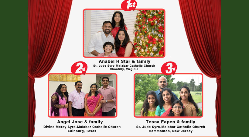 അനബെൽ സ്റ്റാർ & ഫാമിലി (സെന്റ് ജൂഡ് സിറോ-മലബാർ കത്തോലിക്ക പള്ളി, ചാന്റിലി, വിർജീനിയ) ഒന്നാം സ്ഥാനവും, ഏഞ്ചൽ ജോസ് & ഫാമിലി (ഡിവൈൻ മേഴ്സി സിറോ-മലബാർ കത്തോലിക്ക പള്ളി, എഡിൻബർഗ്, ടെക്സാസ്) രണ്ടാം സ്ഥാനവും, ടെസ്സാ ഈപ്പൻ & ഫാമിലി (സെന്റ് ജൂഡ് സിറോ-മലബാർ കത്തോലിക്ക പള്ളി, ഹമ്മോൻടോൺ, ന്യൂ ജേഴ്സി) മൂന്നാം സ്ഥാനവും നേടി.