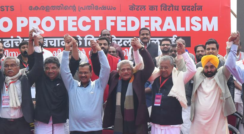 ന്യൂഡൽഹി: കേന്ദ്ര സര്ക്കാര് അവഗണനയ്ക്കെതിരെ മുഖ്യമന്ത്രി പിണറായി വിജയന്റെ നേതൃത്വത്തില് രാജ്യ തലസ്ഥാനത്തു നടക്കുന്ന പ്രതിഷേധ ധര്ണ്ണയ്ക്ക് പിന്തുണയുമായി ഡൽഹി മുഖ്യമന്ത്രി അരവിന്ദ് കെജ്രിവാൾ. സംസ്ഥാനങ്ങൾ തങ്ങളുടെ അവകാശങ്ങൾ ആവശ്യപ്പെട്ട് പ്രതിഷേധിക്കാൻ ജന്തർ മന്ദറിലെത്തേണ്ട സാഹചര്യം കേന്ദ്രം സൃഷ്ടിച്ചുവെന്ന് കെജ്രിവാൾ കുറ്റപ്പെടുത്തി.