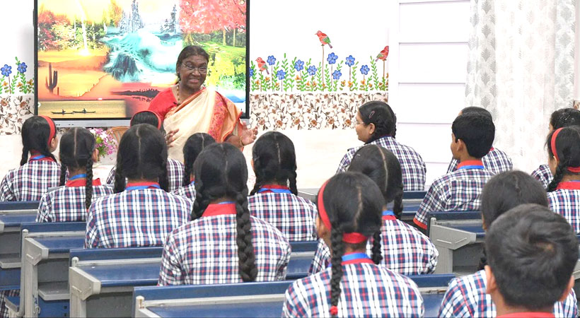 ഡല്ഹിയിലെ ഡോ. രാജേന്ദ്ര പ്രസാദ് കേന്ദ്രീയ വിദ്യാലയത്തിലെ ഒമ്പതാം ക്ലാസ് വിദ്യാര്ത്ഥികളുമായി സംവദിച്ചുക്കൊണ്ട് അധ്യാപികയുടെ വേഷം ഏറ്റെടുത്ത ദ്രൗപതി മുര്മു ആഗോളതാപനം പോലുള്ള വിഷയങ്ങളും പരിസ്ഥിതി സംരക്ഷിക്കുന്നതിനുള്ള വിവിധ മാര്ഗങ്ങളെക്കുറിച്ചും അറിവ് പങ്കുവെച്ചു.