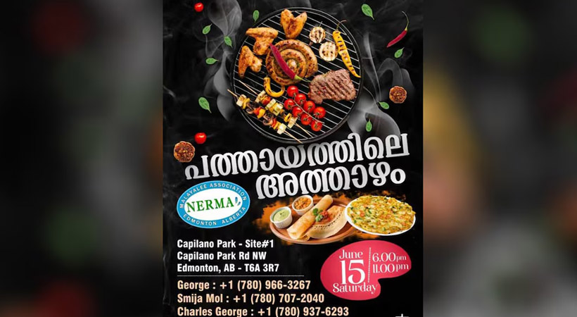എഡ്മണ്ടൻ: എഡ്മണ്ടനിലെ മലയാളികളുടെ കൂട്ടായ്മയായ നേർമ്മ, വേനൽക്കാലം ആഘോഷിക്കുന്നതിനായി “പത്തായത്തിലെ അത്താഴം” എന്ന പേരിൽ വാർഷിക ബാർബിക്യു പാർട്ടി സംഘടിപ്പിക്കുന്നു. ഈ വർഷം, ജൂൺ 15 ന് വൈകുന്നേരം 6 മണി മുതൽ 11 മണി വരെ എഡ്മണ്ടൻ – ക്യാപിലാനോ പാർക്കിലാണ് പാർട്ടി നടക്കുക.