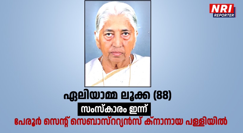 കോട്ടയം: പേരൂർ മുല്ലൂർ പരേതനായ കുര്യാള ലൂക്കായുടെ ഭാര്യ ഏലിയാമ്മ ലൂക്ക (88) നിര്യാതയായി. മൃതസംസ്ക്കാരം 23ന് ഉച്ചകഴിഞ്ഞ് 3.30 pm ന് വസതിയിൽ ആരംഭിച്ച് പേരൂർ സെൻറ് സെബാസ്ററ്യൻസ് ക്നാനായ പള്ളിയിൽ