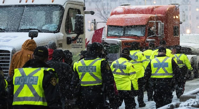 ഇതേത്തുര്ന്ന് 2022 ഫെബ്രുവരി 14-ന്, ഫെഡറല് ഗവണ്മെന്റ് അതിന്റെ ചരിത്രത്തിലാദ്യമായി അടിയന്തരാവസ്ഥ നിയമം നടപ്പിലാക്കി, പ്രതിഷേധങ്ങളില് നിന്ന് ഉടലെടുക്കുന്ന ദേശീയ സുരക്ഷാ പ്രശ്നങ്ങളും മറ്റ അപകടസാധ്യതകളും പരിഗണിച്ച് പ്രതിഷേധക്കാരെ അടിച്ചമര്ത്താനാണ് അടിയന്തരാവസ്ഥാ നിയമം കൊണ്ടുവനന്തും സര്ക്കാര് അതിന്റെ ഉപയോഗത്തെ ന്യായീകരിച്ചതും.