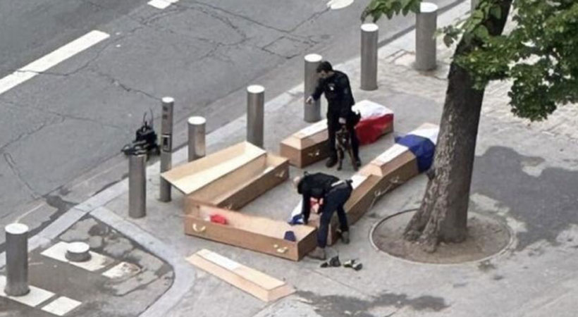 ലോകത്തിലെ ഏറ്റവും കൂടുതല് ആളുകള് സന്ദര്ശിക്കുന്ന വിനോദസഞ്ചാര കേന്ദ്രങ്ങളിലൊന്നായ ഈഫല് ടവറിന് സമീപത്തായുള്ള പാരീസിലെ ക്വായ് ബ്രാന്ലിയില് ശനിയാഴ്ച രാവിലെയാണ് പിടിയിലായവര് ശവപ്പെട്ടികള് ഉപേക്ഷിച്ചത്. പെട്ടികളില് ജിപ്സം അടങ്ങിയിരുന്നതായി വെളിപ്പെടുത്തലുണ്ട്.