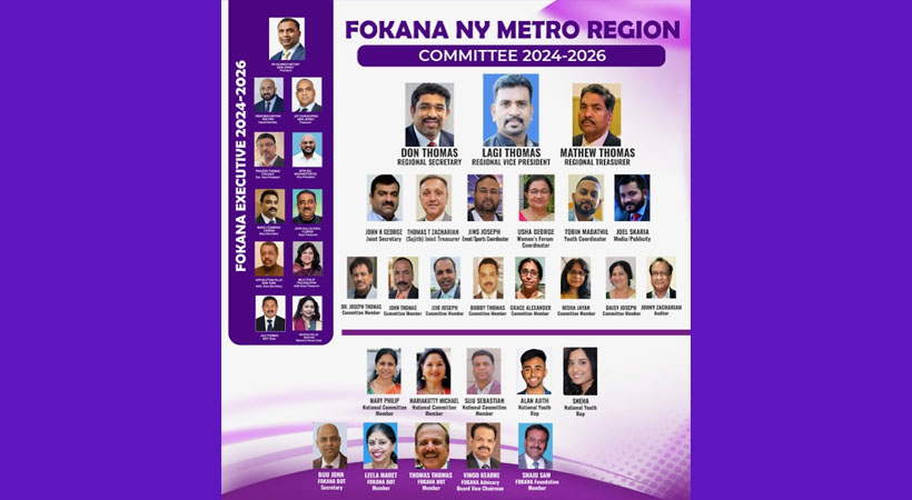 ന്യൂ യോർക്ക് : ഫൊക്കാന ന്യൂ യോർക്ക് മെട്രോ റീജിയൻ (റീജിയൻ 2 )ഭാരവാഹികളെ തെരെഞ്ഞെടുത്തു. റീജിയൻ 2 ന്റെ ഭാരവാഹികൾ ആയി ഡോൺ തോമസ് (റീജണൽ സെക്രട്ടറി),മാത്യു തോമസ് (റീജണൽ ട്രഷർ),ജോൺ കെ ജോർജ് (റീജണൽ ജോയിന്റ് സെക്രട്ടറി) ,തോമസ് റ്റി സക്കറിയ (റീജണൽ ജോയിന്റ് ട്രഷർ) ,ജിൻസ് ജോസഫ് (ഈവന്റ് / സ്പോർട്സ് കോഓർഡിനേറ്റർ ), ഉഷ ജോർജ് (വിമൻസ് ഫോറം കോഓർഡിനേറ്റർ), റ്റോബിൻ മഠത്തിൽ (യൂത്ത് കോർഡിനേറ്റർ ) ജോയൽ സക്കറിയ (മീഡിയ /പബ്ലിസിറ്റി ), കമ്മിറ്റി മെംബേഴ്സ് ആയി ഡോ . ജോസഫ് തോമസ് , ജോൺ തോമസ് , ജിജോ ജോസഫ് , ബോബി തോമസ് , ഗ്രേസ് അലക്സാണ്ടർ , നിഷ ജയൻ , ഡെയ്സി ജോസഫ്, ജോണി സക്കറിയ (ഓഡിറ്റർ) എന്നിവരെ തെരഞ്ഞെടുത്തതായി റീജണൽ വൈസ് പ്രസിഡന്റ് ലാജി തോമസ് അറിയിച്ചു.