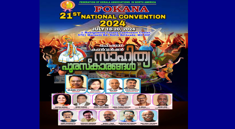 ന്യൂജേഴ്സി: ഫൊക്കാനയുടെ 21-ാമത് ദേശീയ കൺവെൻഷനോടനുബന്ധിച്ചു, ജൂലൈ 18 മുതൽ 20 വരെ നോർത്ത് ബെഥെസ്ഡയിലെ മോണ്ട്ഗോമറി കൗണ്ടി കോൺഫറൻസ് സെന്ററിൽ (Bethesda North Marriott Hotel & Conference Center, 5701 Marinelli Rd, Rockville, MD 20852) സാഹിത്യ സമ്മേളനം നടക്കും. ഇതിന്റെ ഭാഗമായി വ്യാഴം, വെള്ളി ദിവസങ്ങളിൽ നാല് വിഭാഗങ്ങളിലായി മലയാള സാഹിത്യത്തിലെ വിവിധ മേഖലകളിൽ ഗഹനമായ ചർച്ചകളും സെമിനാറുകളും നടത്തുവാൻ സാഹിത്യസമ്മേളന കമ്മിറ്റി തീരുമാനിച്ചതായി ഫൊക്കാന ജനറൽ സെക്രട്ടറി ഡോ. കലാ ഷഹി അറിയിച്ചു. എഴുത്തുകാരായ മുരുകൻ കാട്ടാക്കട, പ്രൊഫ. കോശി തലക്കൽ എന്നിവർ ചർച്ചകളിലും സെമിനാറുകളിലും പങ്കെടുക്കും.