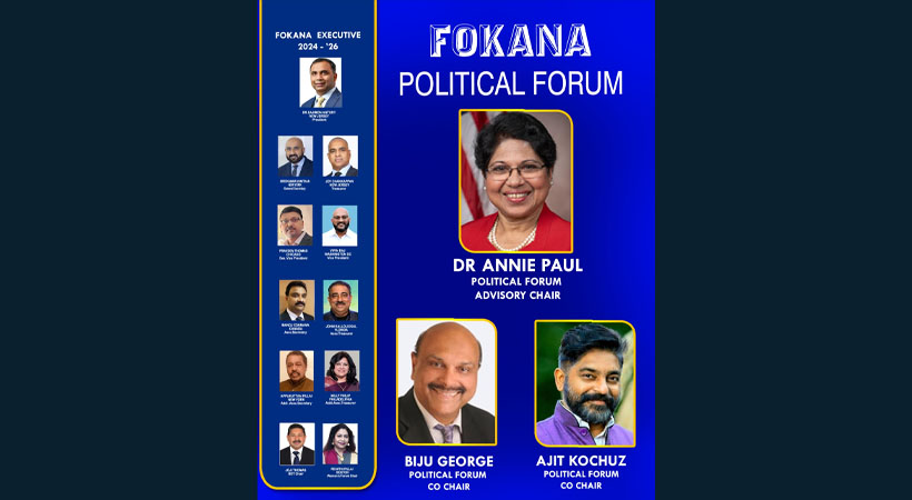 അമേരിക്കൻ പ്രസിഡന്റ് തെരഞ്ഞെടുപ്പ് നവംബർ അഞ്ചാം തീയതി നടക്കുകയാണ്, ഒപ്പം പല സിറ്റികളിലും കൗണ്ടികളിലും സ്റ്റേറ്റിലും പല സ്ഥാനങ്ങളിലേക്കുള്ള തിരഞ്ഞെടുപ്പും നടക്കുകയാണ് . മലയാളികൾ ഉൾപ്പെടെ നിരവധി ഇന്ത്യക്കാരും ഈ തിരഞ്ഞെടുപ്പിൽ മാറ്റുരയ്ക്കുന്നുണ്ട് . അവരെ സാഹിയിക്കുന്നതിനും വിജയിപ്പിക്കുന്നതിനും വേണ്ടിയുള്ള പ്രവർത്തങ്ങൾക്കാണ് ഫൊക്കാന പൊളിറ്റിക്കൽ ഫോറം നിലവിൽ നടത്തുന്നത്.