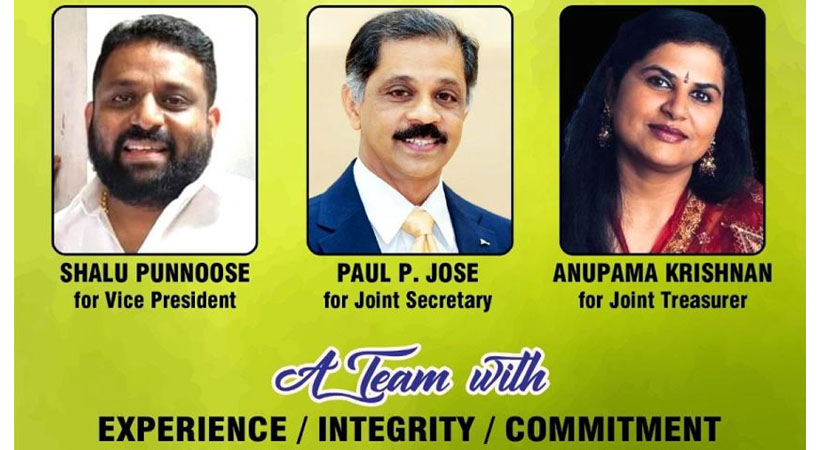 ബേബി മണക്കുന്നേലിന് 386 വോട്ടും എതിർ സ്ഥാനാർത്ഥി തോമസ് ടി ഉമ്മന് 128 വോട്ടും ലഭിച്ചു. ജനറൽ സെക്രട്ടറിയായി തെരഞ്ഞെടുക്കപ്പെട്ട ബൈജു വർഗ്ഗീസിന് 307 വോട്ടും, സാമുവേൽ മത്തായിക്ക് 159 വോട്ടും, മധു നമ്പ്യാർക്ക് 48 വോട്ടും ലഭിച്ചു. ട്രഷററായി വിജയിച്ച സിജിൽ പാലക്കലോടിക്ക് 427 വോട്ടും ബിനൂബ് ശ്രീധരൻ 87 വോട്ടും , വൈസ് പ്രസിഡൻ്റായി വിജയിച്ച ഷാലു പുന്നൂസിന് 391 വോട്ടും സണ്ണി കല്ലൂപ്പാറയ്ക്ക് 123 വോട്ടും , ജോയിൻ്റ് സെക്രട്ടറിയായി വിജയിച്ച പോൾ പി ജോസിന് 410 വോട്ടും പിൻസ് മാത്യു നെച്ചിക്കാട്ടിന് 104 വോട്ടും , ജോ .ട്രഷറാറായി വിജയിച്ച അനുപമ കൃഷ്ണന് 336 വോട്ടും അമ്പിളി സജിമോന് 178 വോട്ടും ലഭിച്ചതായി തെരഞ്ഞെടുപ്പ് കമ്മീഷൻ അറിയിച്ചു.