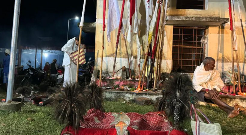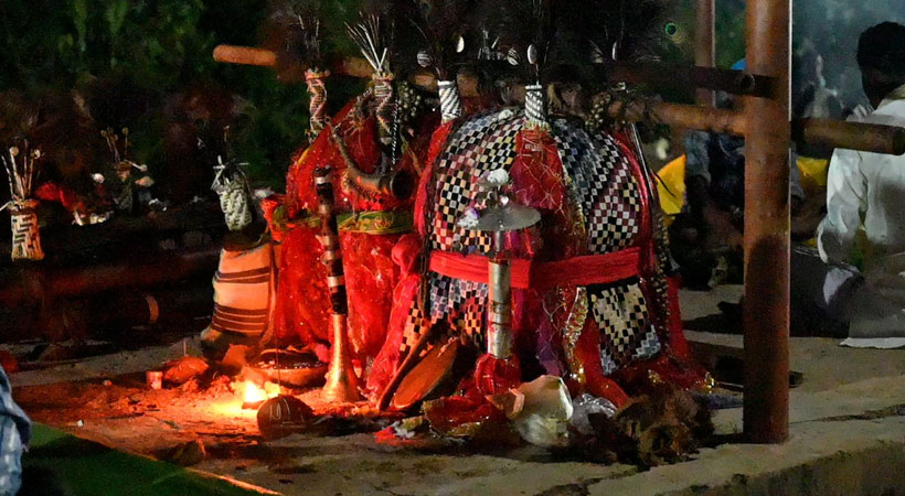 ശിക്ഷിക്കപ്പെട്ട ദൈവങ്ങളെ എന്തുചെയ്യും? ക്ഷേത്രത്തില് നിന്ന് നീക്കം ചെയ്യുകയും ചിലപ്പോള് മരങ്ങള്ക്കടിയില് സൂക്ഷിക്കുകയും ചെയ്യുന്നു. അതെന്തിനെന്ന് ചോദിച്ചാല്, അതൊരു പ്രതീകാത്മക തടവറയാണ്. വിഗ്രഹങ്ങളിലെ സ്വര്ണ്ണമോ വെള്ളിയോ അലങ്കാരങ്ങള് നീക്കം ചെയ്യാതെയാണ് ‘തടവറ’ ശിക്ഷ വിധിക്കുന്നത്. അപ്പോള് മോഷ്ടാക്കള്ക്ക് എളുപ്പമായെന്ന് ചിന്തിക്കാന് വരട്ടെ, ദൈവങ്ങളുടെ ആഭരണങ്ങളും വിലപിടിപ്പുള്ളതൊന്നും ഇവിടെനിന്നും ആരും മോഷ്ടിക്കില്ല. ഇത്തരമൊരു പ്രവൃത്തി ദൈവഭയത്താല് ആരും ചെയ്യില്ല. ദൈവം ശിക്ഷ നല്കുമെന്നാണ് ആദിവാസികള് വിശ്വസിക്കുന്നത്.
