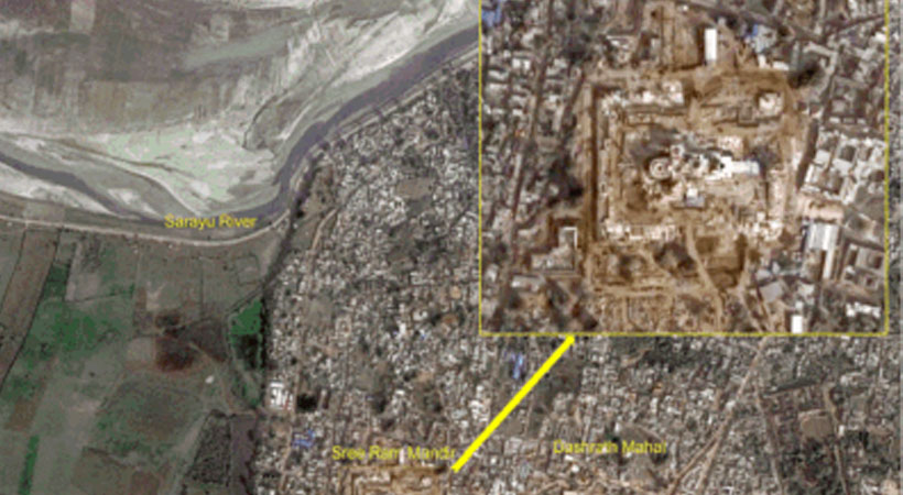 നിര്മ്മാണത്തിലിരിക്കുന്ന ക്ഷേത്രത്തിന്റെ ചിത്രം ഡിസംബര് 16 ന്, പ്രതിഷ്ഠാ ചടങ്ങിന് ഏകദേശം ഒരു മാസം മുമ്പാണ് ഉപഗ്രഹങ്ങള് ചിത്രീകരിച്ചത്. സാറ്റലൈറ്റ് ചിത്രങ്ങളില്, വീണ്ടും വികസിപ്പിച്ച ദശരഥ് മഹലും സരയു നദിയും രാം മന്ദിറിന് സമീപം കാണാം. ചിത്രങ്ങളില് പുതുതായി നവീകരിച്ച അയോധ്യ റെയില്വേ സ്റ്റേഷനും കാണാം.