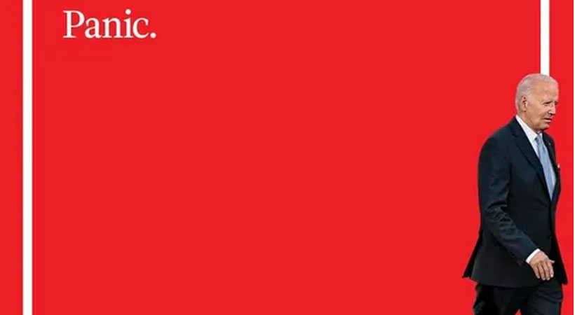 ഡെമോക്രാറ്റിക് സ്ഥാനാർഥിയായ പ്രസിഡൻ്റ് ബൈഡൻ ചുവന്ന പശ്ചാത്തലത്തിൽ ഒറ്റയ്ക്ക് നടന്ന് പുറത്തേക്ക് പോകുന്നതാണ് കവർ ചിത്രം. അതിനു മുകളിൽ ‘Panic’ ( പരിഭ്രാന്തി) എന്ന തലവാചകവും കാണാം. സോഷ്യൽ നെറ്റ്വർക്കിംഗ് സൈറ്റായ എക്സിലൂടെയാണ് കവർ ചിത്രം ആദ്യം പുറത്തുവന്നിരിക്കുന്നത്.