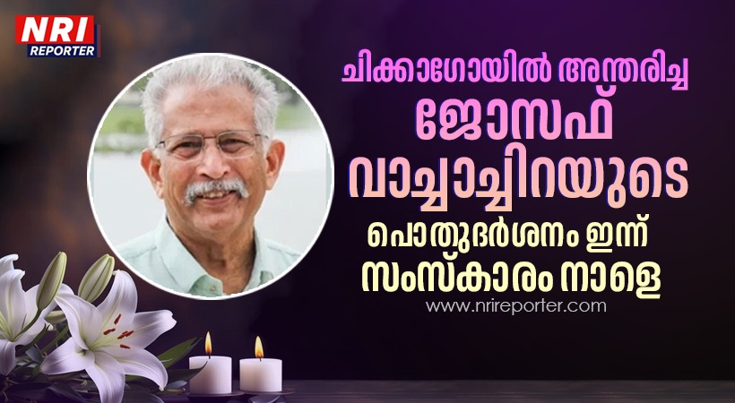 ചിക്കാഗോ: ചിക്കാഗോയില് കഴിഞ്ഞ ദിവസം അന്തരിച്ച ജോസഫ് വാച്ചാച്ചിറ (കുഞ്ഞുഞ്ഞുകുട്ടി-79 ) യുടെ സംസ്കാരം നവംബര് എട്ടാം തിയതി നടക്കും. ചിക്കാഗോ ബെന്സന്വില് ക്നാനായ കാത്തലിക്ക് ചര്ച്ച് അംഗമായിരുന്നു ഇദ്ദേഹം. പൊതുദര്ശനം വ്യാഴം (നവം. 7) വൈകുന്നേരം 5 മുതല് രാത്രി 9 വരെ ബെന്സണ്വില്ല സേക്രട്ട് ഹാര്ട്ട് ക്നാനായ കത്തോലിക്ക പള്ളിയില്. സംസ്കാര ശുശ്രൂഷ നവംബര് 8 വെള്ളിയാഴ്ച രാവിലെ 9:30ന് ഇല്ലിനോയിസിലെ ബെന്സണ്വില്ല സേക്രട്ട് ഹാര്ട്ട് ക്നാനായ കത്തോലിക്ക പള്ളിയില്. തുടര്ന്ന് സംസ്കാരം ക്വീന് ഓഫ് ഹെവന് കാത്തലിക് സെമിത്തേരി & മൗസോലിയംസ്, 1400 സൗത്ത് വുള്ഫ് റോഡ്, ഹില്സൈഡ്, ഇല്ലിനോയിസ് 60162 ല്.