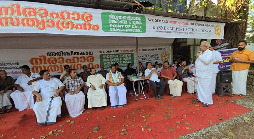 മട്ടന്നൂർ : കണ്ണൂർ എയർപോർട്ടിന് ‘പോയ്ന്റ് ഓഫ് കോൾ’ പദവി ലഭ്യമാക്കണമെന്ന് ആവശ്യപ്പെട്ടുകൊണ്ട്, ‘കണ്ണൂർ എയർപോർട്ട് ആക്ഷൻ കൗൺസിൽ’ ചെയർമാൻ രാജീവ് ജോസഫ് തിരുവോണ ദിവസം മട്ടന്നൂരിൽ ‘അനിശ്ചിതകാല നിരാഹാര സത്യാഗ്രഹം’ ആരംഭിച്ചു. ഖാദി ബോർഡ് വൈസ് ചെയർമാൻ പി. ജയരാജൻ നിരാഹാര സത്യാഗ്രഹം ഉത്ഘാടനം ചെയ്തു. മട്ടന്നൂരിലെ വായംതോട് ജംഗ്ഷനിൽ രാവിലെ ഒൻപതരക്ക് ആരംഭിച്ച സത്യാഗ്രഹത്തിന്റെ മുന്നോടിയായി, ഹോളി ട്രിനിറ്റി ദേവാലയം ഇടവക വികാരി ഫാ. രഞ്ജിത്തിന്റെ നേതൃത്വത്തിൽ പ്രത്യേക പ്രാർത്ഥന നടത്തി.
