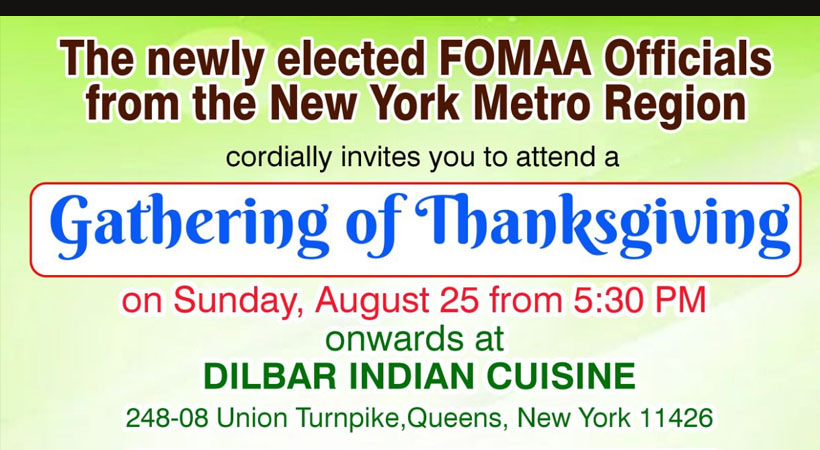 അനുമോദന യോഗത്തിൽ പങ്കെടുക്കുവാൻ താല്പര്യമുള്ളവരെല്ലാവരും ഞായറാഴ്ച 5:30-ന് ഫ്ലോറൽ പാർക്കിലുള്ള ദിൽബാർ റെസ്റ്റോറന്റിൽ (248-08 Union Turnpike, Queens, NY -11426) എത്തിച്ചേരണമെന്ന് സംഘാടകർ അറിയിച്ചു.