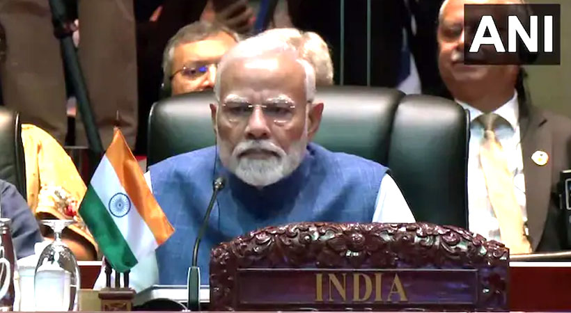ത്രിദിന സന്ദര്ശനത്തിനായി യുറേഷ്യയിലെത്തിയ മോദി ലാവോസില് നടക്കുന്ന 19-ാമത് കിഴക്കന് ഏഷ്യ ഉച്ചകോടിയെ അഭിസംബോധന ചെയ്ത് സംസാരിക്കുകയായിരുന്നു. പ്രശ്നങ്ങള്ക്കുള്ള പരിഹാരം യുദ്ധക്കളത്തില് നിന്ന് ഉണ്ടാകില്ലെന്ന് വ്യക്തമാക്കിയ പ്രധാനമന്ത്രി, സമാധാനം പുലരേണ്ടതിന്റെയും പുരോഗതിയുടെ പ്രാധാന്യത്തെക്കുറിച്ചും ഊന്നിപ്പറഞ്ഞു. ദക്ഷിണ ചൈനാ കടലിന്റെ സമാധാനവും സുരക്ഷയും സുസ്ഥിരതയും മുഴുവന് ഇന്തോ-പസഫിക് മേഖലയുടെയും താല്പ്പര്യമാണെന്നും അദ്ദേഹം വ്യക്തമാക്കി.