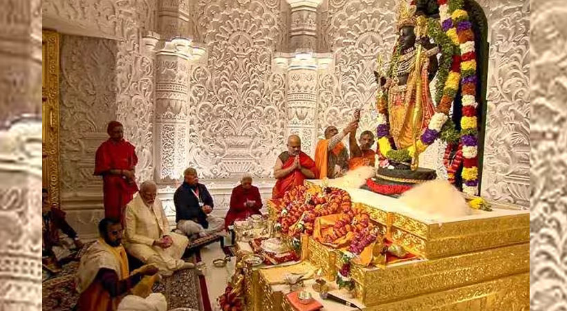 അതേസമയം അഭിജിത് മുഹൂര്ത്തത്തില് ഏറ്റവും വിശേഷപ്പെട്ട സമയമായ ഉച്ചയ്ക്ക് 12:29:08 നും 12:30: 32 നും ഇടയിലാണ് അയോധ്യയിലെ ശ്രീരാമക്ഷേത്രത്തില് ബാലരാമ വിഗ്രഹം പ്രതിഷ്ഠിക്കുന്ന ചടങ്ങ് നടന്നത്. മുഖ്യയജമാനന് ആയിരുന്ന പ്രധാനമന്ത്രി നരേന്ദ്രമോദിയാണ് പ്രതിഷ്ഠാ ചടങ്ങിന് നേതൃത്വം വഹിച്ചത്. ചടങ്ങ് നടക്കുമ്പോള് ആര്എസ്എസ് മേധാവി മോഹന് ഭാഗവതും മോദിക്കൊപ്പം ഉണ്ടായിരുന്നു. കാശിയിലെ വേദപണ്ഡിതന് ലക്ഷ്മികാന്ത് ദീക്ഷിത് ആണ് ചടങ്ങിന് കാര്മികത്വം വഹിച്ചത്. ചടങ്ങിന് സാക്ഷിയായി 121 ആചാര്യന്മാരും പ്രമുഖ വ്യക്തികളും സന്നിഹിതരായിരുന്നു.