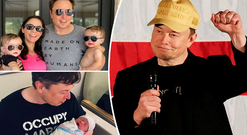 മസ്കിന് 12 കുട്ടികളാണ് ഉണ്ടായിരുന്നത്. 2002 ല് മുന് ഭാര്യ ജസ്റ്റിന് മസ്കിനില് ഉണ്ടായ ആദ്യ കുട്ടി വെറും 10 ആഴ്ച പ്രായമുള്ളപ്പോള് സഡന് ഇന്ഫന്റ് ഡെത്ത് സിന്ഡ്രോം ബാധിച്ച് മരിച്ചു. 2008 വിവാഹമോചനത്തിന് മുമ്പ് ഇരുവര്ക്കുമായി അഞ്ച് കുട്ടികളുണ്ടായിരുന്നു. ഇരട്ടകളായ ഗ്രിഫിന്, വിവിയന്, തുടര്ന്ന് ട്രിപ്പിള്സ് സാക്സണ്, ഡാമിയന്, കായ് എന്നിവര്.