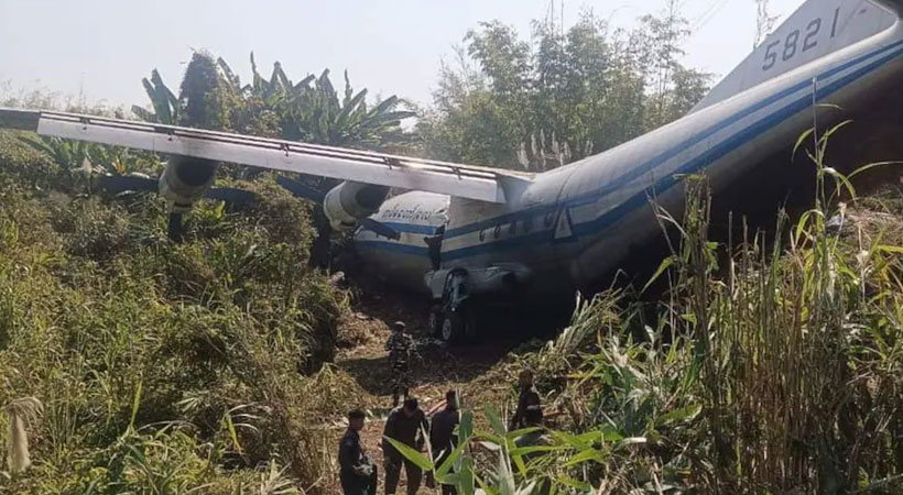 രാവിലെ മ്യാന്മര് എയര്ഫോഴ്സ് വൈ-8 കാര്ഗോ വിമാനം മിസോറം ഗവണ്മെന്റ് എയര്പോര്ട്ടിന്റെ ടേബിള്ടോപ്പ് റണ്വേയെ മറികടന്ന് അടുത്തുള്ള കുറ്റിക്കാട്ടിലേക്ക് ഇടിച്ചുകയറുകയായിരുന്നു. വിമാനത്തിന്റെ അടിഭാഗം പിളര്ന്നിട്ടുണ്ട്.