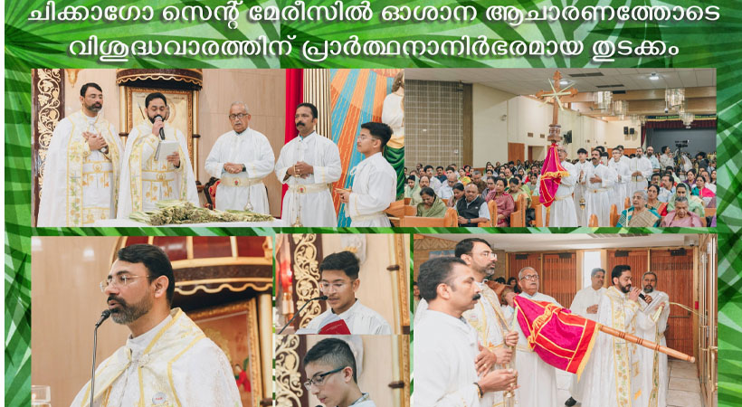ചിക്കാഗോ: ചിക്കാഗോ സെന്റ് മേരീസ് ക്നാനായ കത്തോലിക്കാ ഇടവകയിൽ ഭക്തിനിർഭരമായ ഓശാന ആചരണത്തോടെ വിശുദ്ധവാരത്തിന് തുടക്കം കുറിച്ചു. വികാരി. ഫാ. സിജു മുടക്കോടിലിന്റെ മുഖ്യ കാർമികത്വത്തിൽ നടന്ന ഓശാന ആചരണത്തിന്റെ ഭാഗമായി സെന്റ് മേരീസ് ഇടവകയിൽ മൂന്നു കുർബ്ബാനകളിലും കുരുത്തോല വിതരണം നടന്നു.