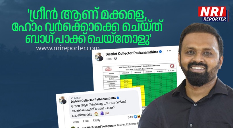 കാലാവസ്ഥ പ്രവചനത്തിന്റെ ചിത്രം പങ്കുവച്ചുകൊണ്ട് നാളെ അവധിയില്ലെന്നാണ് കളക്ടർ പോസ്റ്റിട്ടത്. ‘ഗ്രീൻ ആണ് മക്കളെ… ഹോം വർക്ക് ഒക്കെ ചെയ്ത് ബാഗ് പാക്ക് ചെയ്തൊളു’ എന്ന കമന്റോടുകൂടിയാണ് കളക്ടർ രംഗത്തെത്തിയത്. കളക്ടറുടെ കുറിപ്പാണെങ്കിൽ വൈകാതെ തന്നെ വൈറലുമായി. നിരവധിപ്പേരാണ് പത്തനംതിട്ട കളക്ടറുടെ ഈ കമന്റിന് മറുപടി നൽകിയിരിക്കുന്നത്. മറുപടി കമന്റിലും അവധി ആവശ്യം കുറഞ്ഞിട്ടില്ലെന്നതാണ് മറ്റൊരു യാഥാർത്ഥ്യം.