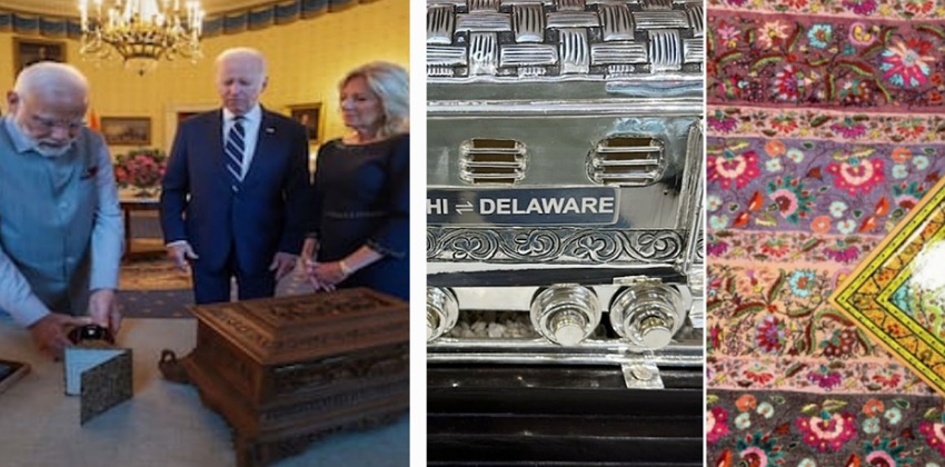 വെള്ളി കൊണ്ടുള്ള കരകൗശലത്തില് സമ്പന്നമായ പാരമ്പര്യത്തിന് പേരുകേട്ട മഹാരാഷ്ട്രയില് നിന്നുള്ള കരകൗശല വിദഗ്ധരാണ് ഈ വിശിഷ്ട സമ്മാനം നിര്മിച്ചത്. പ്രഥമ വനിത ജില് ബൈഡന് കശ്മീരി പശ്മിന ഷാള് ആണ് മോദി ഉപഹാരമായി നല്കിയത്.