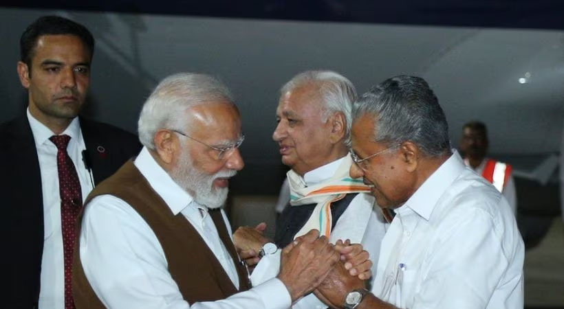 കൊച്ചി∙ രണ്ടു ദിവസത്തെ കേരള സന്ദർശനത്തിനായി പ്രധാനമന്ത്രി നരേന്ദ്ര മോദി കേരളത്തിലെത്തി. വ്യോമസേനയുടെ പ്രത്യേക വിമാനത്തിൽ നെടുമ്പാശേരി വിമാനത്താവളത്തിൽ എത്തിയ പ്രധാനമന്ത്രിയെ കേരള മുഖ്യമന്ത്രി പിണറായി വിജയനും ഗവർണർ ആരിഫ് മുഹമ്മദ് ഖാനും ചേർന്നു സ്വീകരിച്ചു. തുടർന്ന് ഹെലികോപ്ടറിൽ ഏഴു മണിയോടെ വ്യോമസേന വിമാനത്താവളത്തിലെത്തി.
