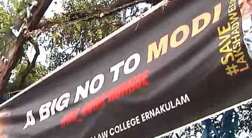 കൊച്ചി: പ്രധാനമന്ത്രി നരേന്ദ്ര മോദിയുടെ റോഡ് ഷോ കടന്നുപോകുന്ന എറണാകുളം ലോകോളേജ് കാമ്പസിൽ സ്ഥാപിച്ച ബോര്ഡ് എടുത്ത് മാറ്റി പോലീസ്. കെഎസ്യു പ്രവര്ത്തകര് സ്ഥാപിച്ച ബോര്ഡാണ് പോലീസെത്തി എടുത്തുമാറ്റിയത്. രണ്ട് കെഎസ്യു പ്രവര്ത്തകരെ പോലീസ് കസ്റ്റഡിയിലെടുക്കുകയും ചെയ്തിട്ടുണ്ട്. ഇതിന് പിന്നാലെ ക്യാമ്പസിനകത്ത് വിദ്യാര്ഥികള് തമ്പടിച്ചതോടെ ബിജെപി പ്രവര്ത്തകര് പ്രതിഷേധവുമായി രംഗത്തെത്തി. ‘എ ബിഗ് നോ ടു മോദി’ എന്നെഴുതിയ ബാനറാണ് ക്യാമ്പസിനകത്ത് സ്ഥാപിച്ചത്.
