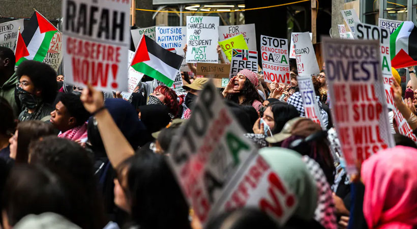 വിദ്യാര്ത്ഥികളുടെ നേതൃത്വത്തില് കൊളംബിയ യൂണിവേഴ്സിറ്റി ക്യാമ്പസില് നിന്നു തുടങ്ങിയ പ്രതിഷേധമാണ് ഇപ്പോള് മെറ്റ് ഗാല വരെ എത്തി നില്ക്കുന്നത്.
