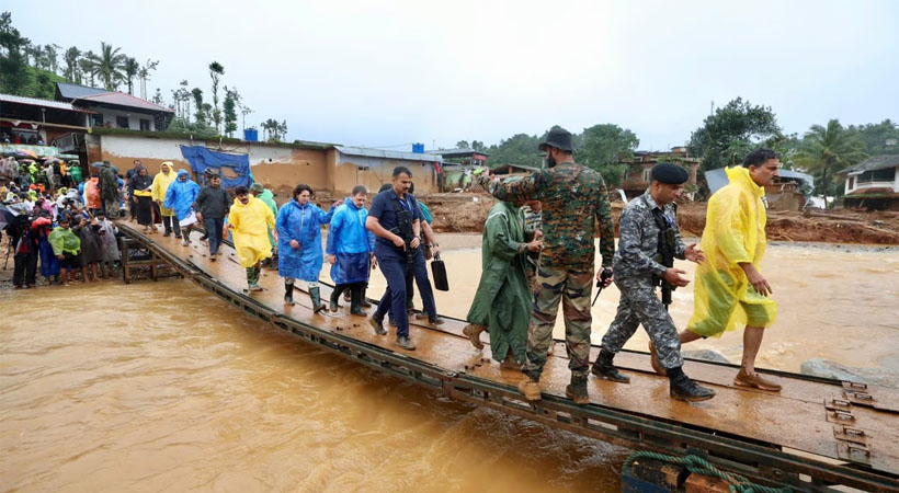 ദൂരന്തഭൂമിയില് സൈന്യം തയ്യാറാക്കിയ പാലം കടന്നെത്തിയ രാഹുലും സംഘവും രക്ഷാപ്രവര്ത്തകരുമായി സംസാരിച്ചു. ദുരന്തസ്ഥലം സന്ദര്ശിച്ചശേഷം ദുരന്തബാധിതരെ പാര്പ്പിച്ചിരിക്കുന്ന ക്യാംപില് രാഹുലും പ്രിയങ്കയും എത്തി അവരെ ആശ്വസിപ്പിച്ചു.