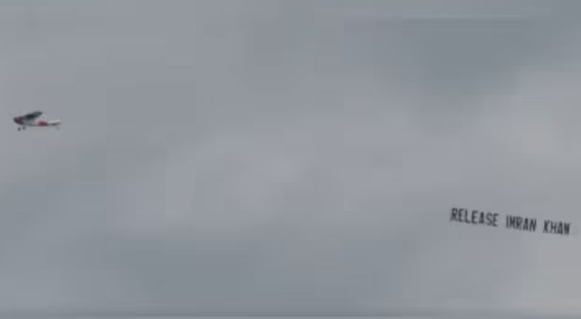 സോഷ്യല് മീഡിയ പ്ലാറ്റ്ഫോമുകളില് വ്യാപകമായി ഷെയര് ചെയ്യപ്പെട്ട വീഡിയോയില് ഇമ്രാന് ഖാനെ മോചിപ്പിക്കുക എന്ന് വ്യക്തമാക്കുന്ന ബാനറുമായി സ്റ്റേഡിയത്തിന് സമീപത്തുകൂടി വിമാനം പറക്കുന്നത് വ്യക്തമാക്കുന്നു. മഴ കാരണം കളി ഇടയ്ക്ക് ഇടവേള എടുത്തപ്പോഴായിരുന്നു സംഭവം. ഇമ്രാന് ഖാന്റെ പാര്ട്ടിയായ പാകിസ്ഥാന് തെഹ്രീക്-ഇ-ഇന്സാഫും (പിടിഐ) അതിന്റെ എക്സില് വീഡിയോ പങ്കിട്ടു.