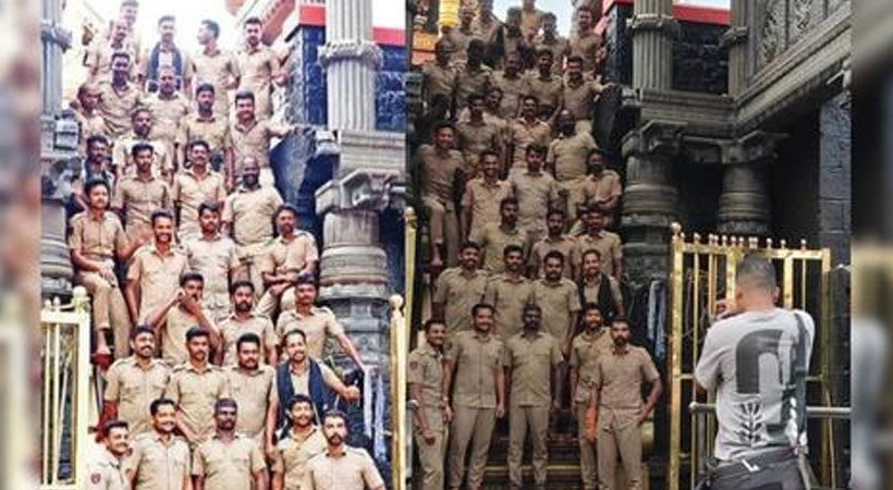 പതിനെട്ടാംപടിയില് പുറംതിരിഞ്ഞുനിന്നു പൊലീസുകാര് ഫോട്ടോ എടുത്തത് വിവാദമായിരുന്നു. ഫോട്ടോ സമൂഹ മാധ്യമങ്ങളില് പ്രചരിക്കുകയും ചെയ്തു. കഴിഞ്ഞ ശനിയാഴ്ച്ചയാണ് ഏറെ ചര്ച്ചകള്ക്ക് കാരണമായ ഫോട്ടോഷൂട്ട് നടന്നത്. പടി ഡ്യൂട്ടി ഒഴിഞ്ഞ എസ്എപി ക്യാംപിലെ 23 പോലീസുകാരാണ് ഫോട്ടോ എടുത്തത്. പന്തളം കൊട്ടാരം അടക്കം പൊലീസുകാര്ക്കെതിരെ രംഗത്തെത്തിയിരുന്നു.