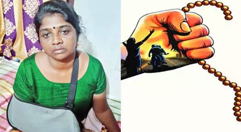 ഞായറാഴ്ച വൈകീട്ട് ആറരയോടെയാണ് മണ്ണഞ്ചേരി പഞ്ചായത്ത് ഒന്പതാം വാര്ഡ് റോഡുമുക്ക് കൈതക്കാപറമ്പില് വി.ജി. ഗിരീഷിന്റെ ഭാര്യ പ്രസീത സ്കൂട്ടറില് യാത്ര ചെയ്യവേ മോഷ്ടാക്കളുടെ ആക്രമണത്തിന് ഇരയായത്.
